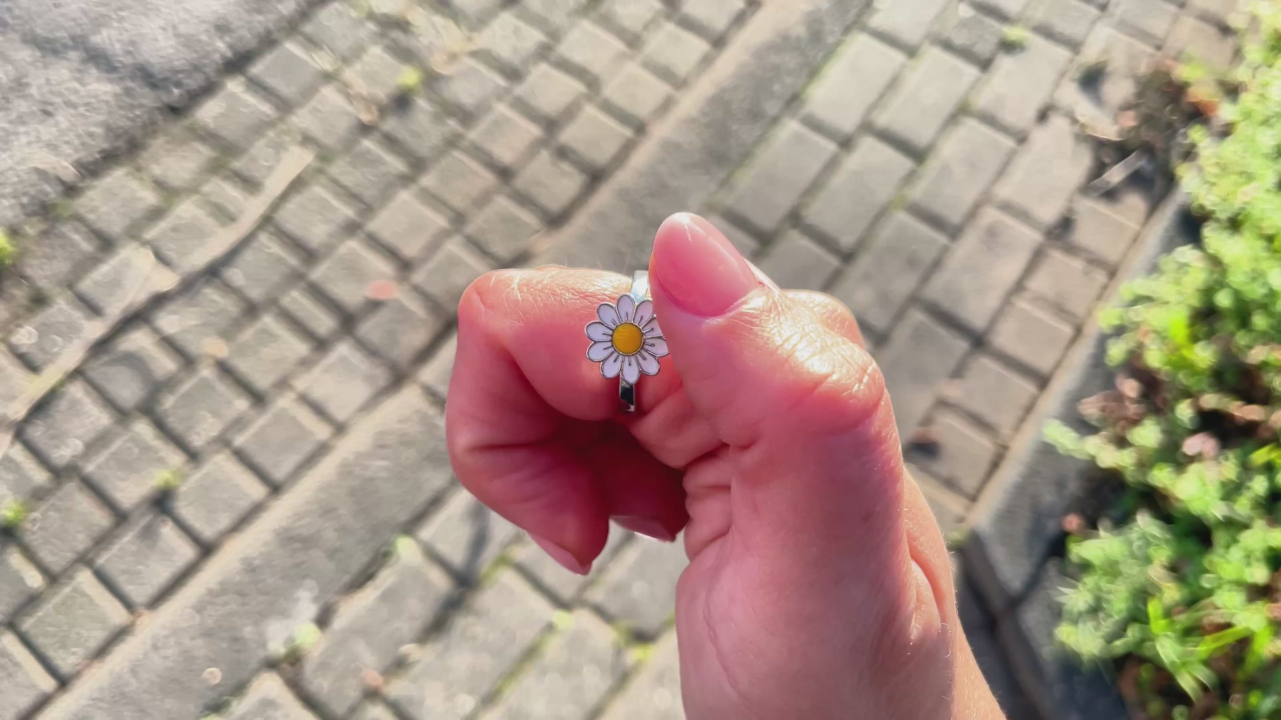 Flexibel verstellbar, passt sich der Margaret Anxiety Ring angenehm an jeden Finger an. Der Ring zeigt eine feine Margerite, die sich sanft drehen lässt und dem Design eine lebendige Leichtigkeit verleiht. Das Drehen der Margerite hilft dabei, innere Unruhe zu beruhigen, Stress abzubauen und einen Moment der Gelassenheit zu finden.